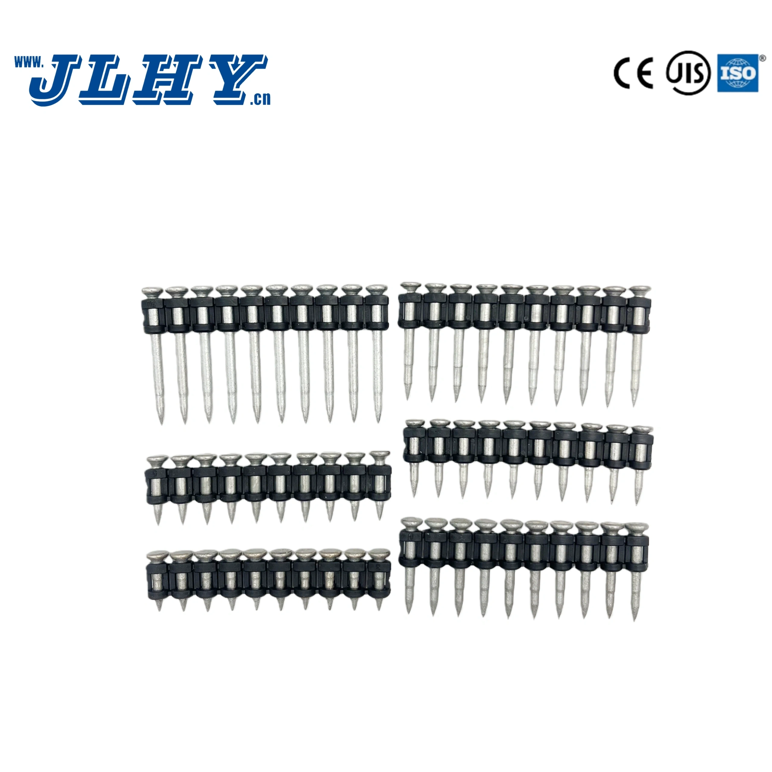 JLHY Collated Steel Pin Nails are high-strength fastening pins designed for use with gas-powered, powder-actuated, or pneumatic pin nailers. Manufactured from hardened carbon steel or alloy steel, these pins deliver fast, secure, and vibration-resistant fastening into concrete, steel, brick, and other hard substrates, ideal for Construction contractors, Industrial installers, Fastening tool brands, & Building material wholesalers.