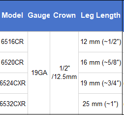 1/2" (12.7 mm) Crown Width — Ideal balance of holding power and minimal surface visibility for finish and trim work.